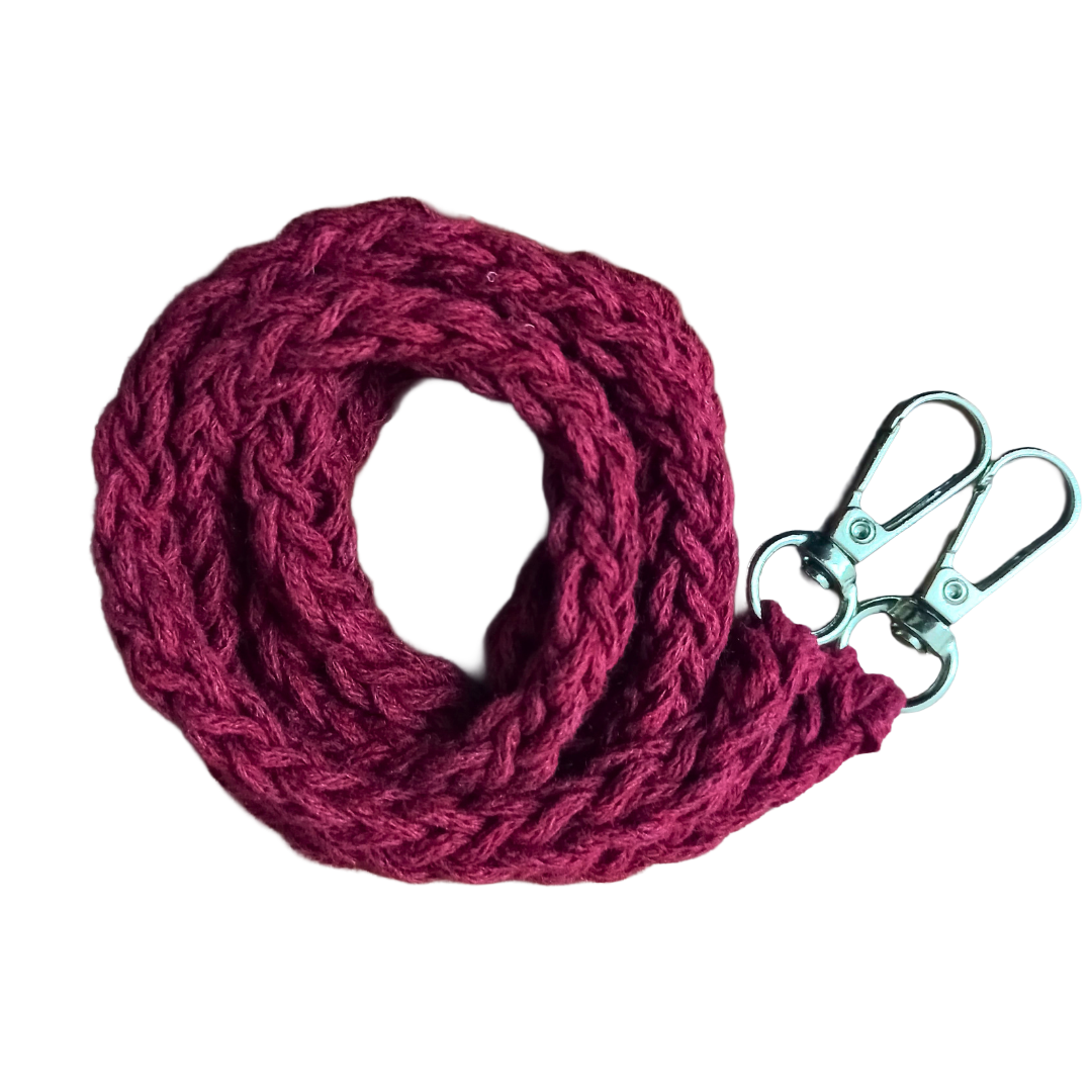 Derin bordo tonuyla şıklığı ve zarafeti bir araya getiren bu kordon çanta askısı, el emeği dokusuyla her çantaya sofistike bir dokunuş katar. Dayanıklı kordon yapısı ve pratik tak-çıkar klipsleriyle hem kullanışlı hem de stil sahibi bir aksesuar.
