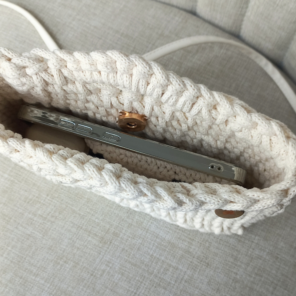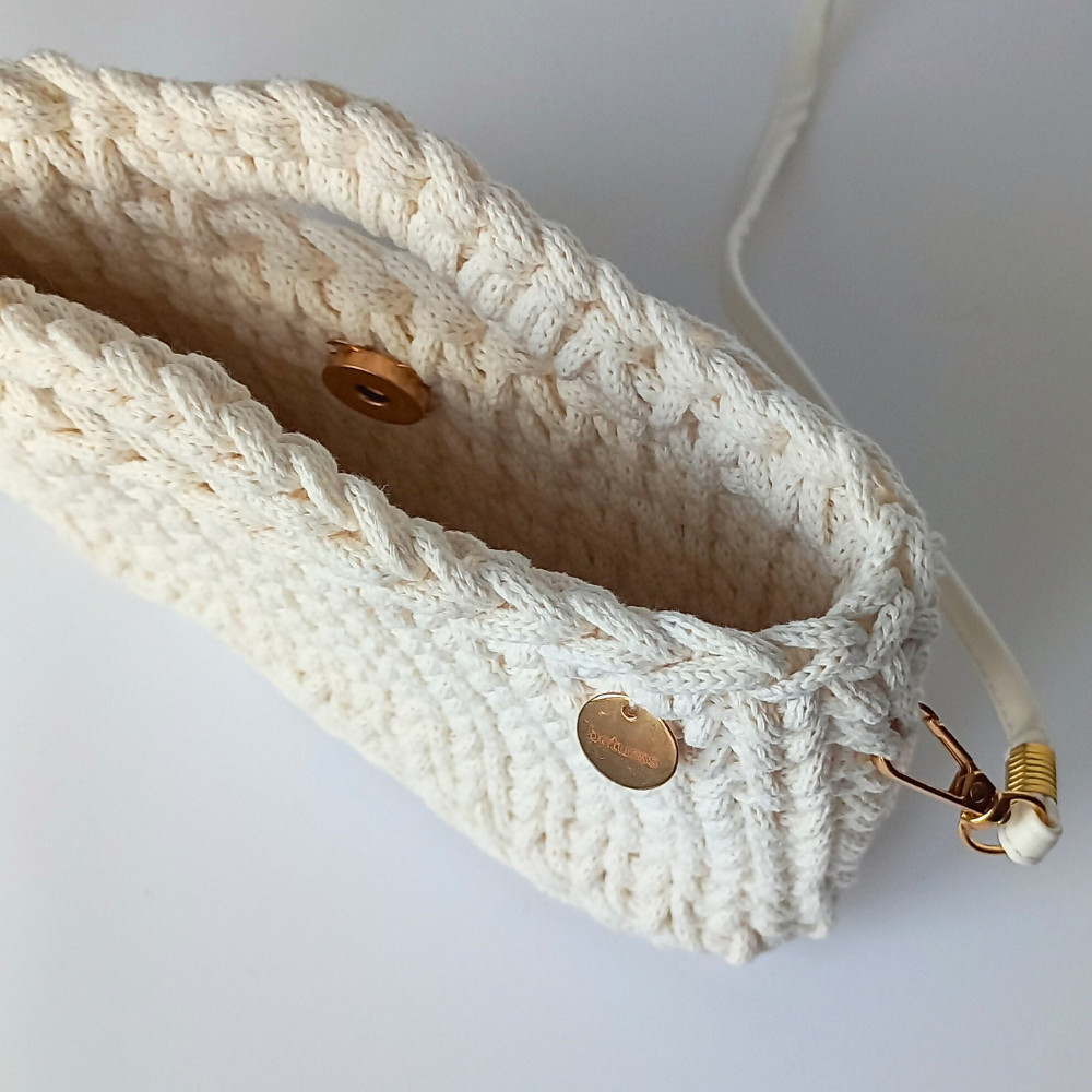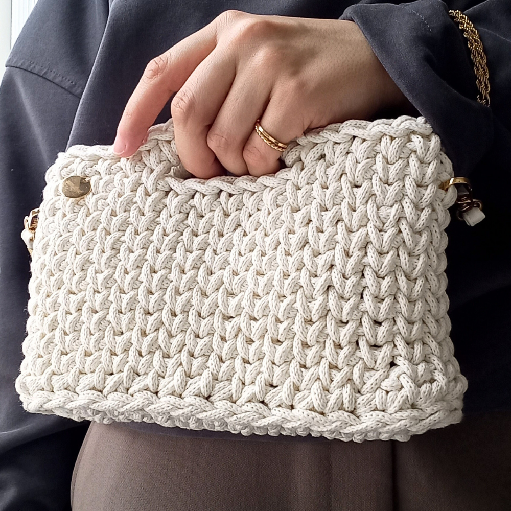 El örgüsü krem kadın çanta; bej, kahverengi, siyah, gri ve pastel tonlarla dengeli bir görünüm oluşturur. Günlük şehir hayatında, kahve buluşmalarında ve özel günlerde sade şıklığı ön plana çıkarır. Telefon, cüzdan ve temel kişisel eşyalar için yeterli iç hacim sunar.