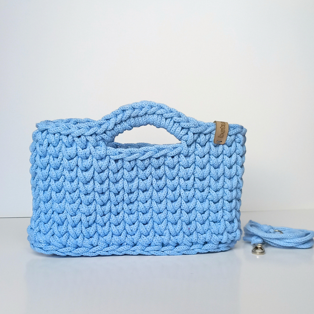 El Örgüsü Pastel Mavi Makrome Çanta –Mıknatıslı Kapamalı