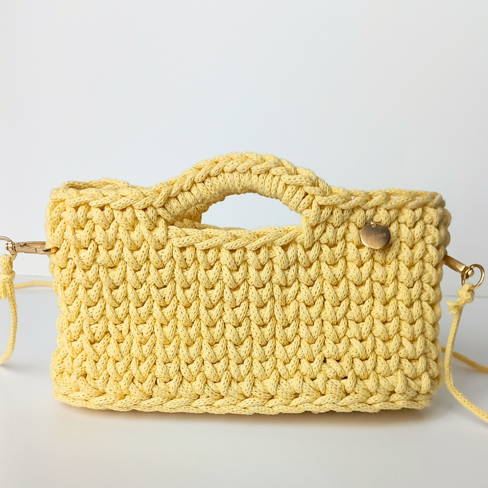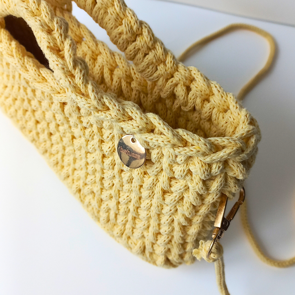 El Örgüsü Soft Sarı Makrome Çanta – İp Askılı, Mıknatıslı Kapamalı