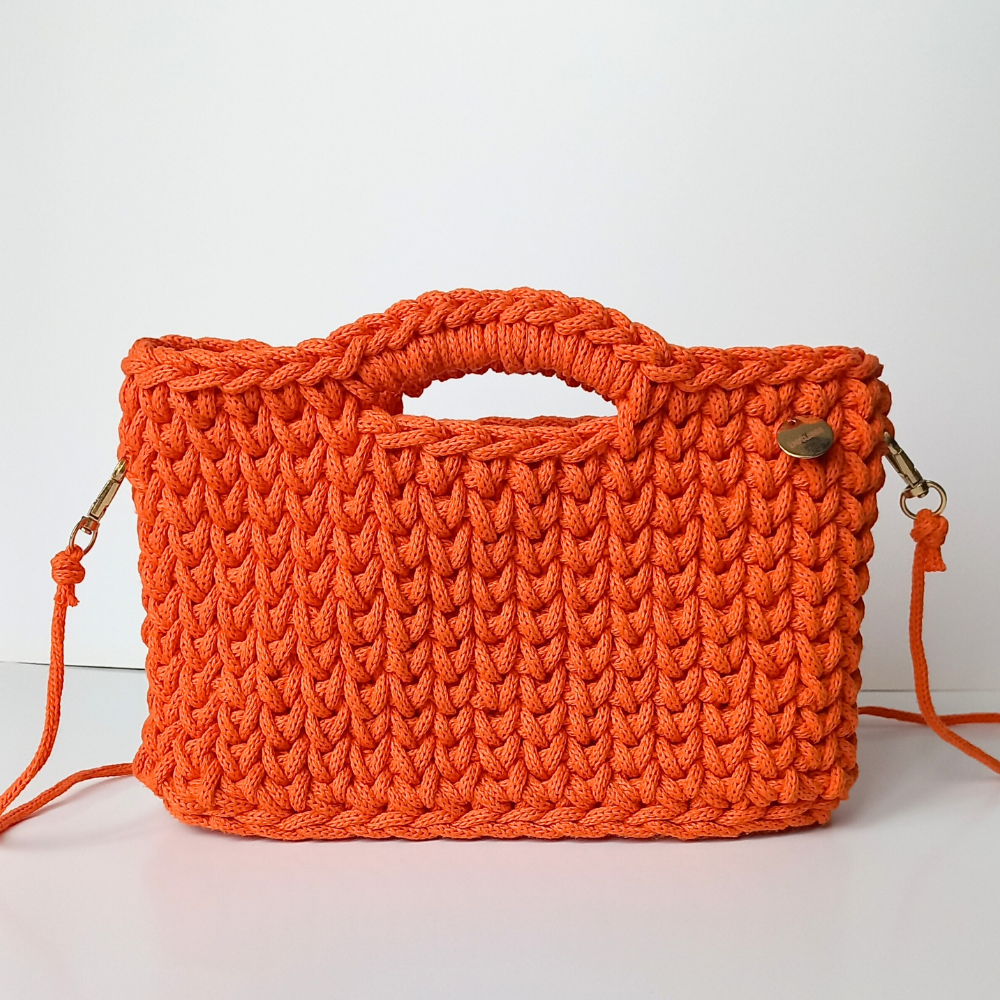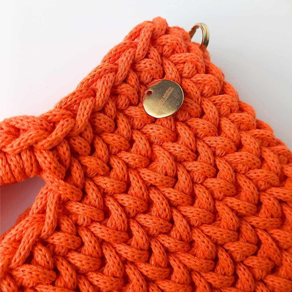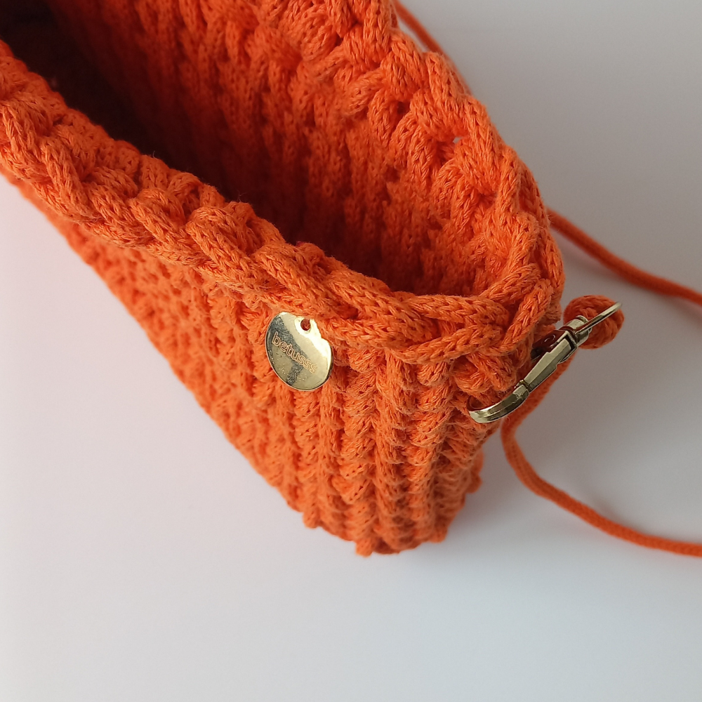 El Örgüsü Turuncu Makrome Çanta – İp Askılı, Mıknatıslı Kapamalı
