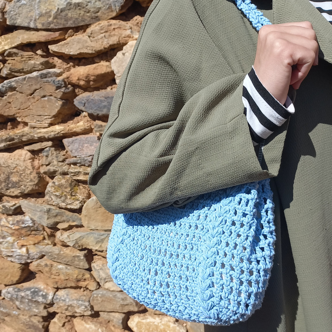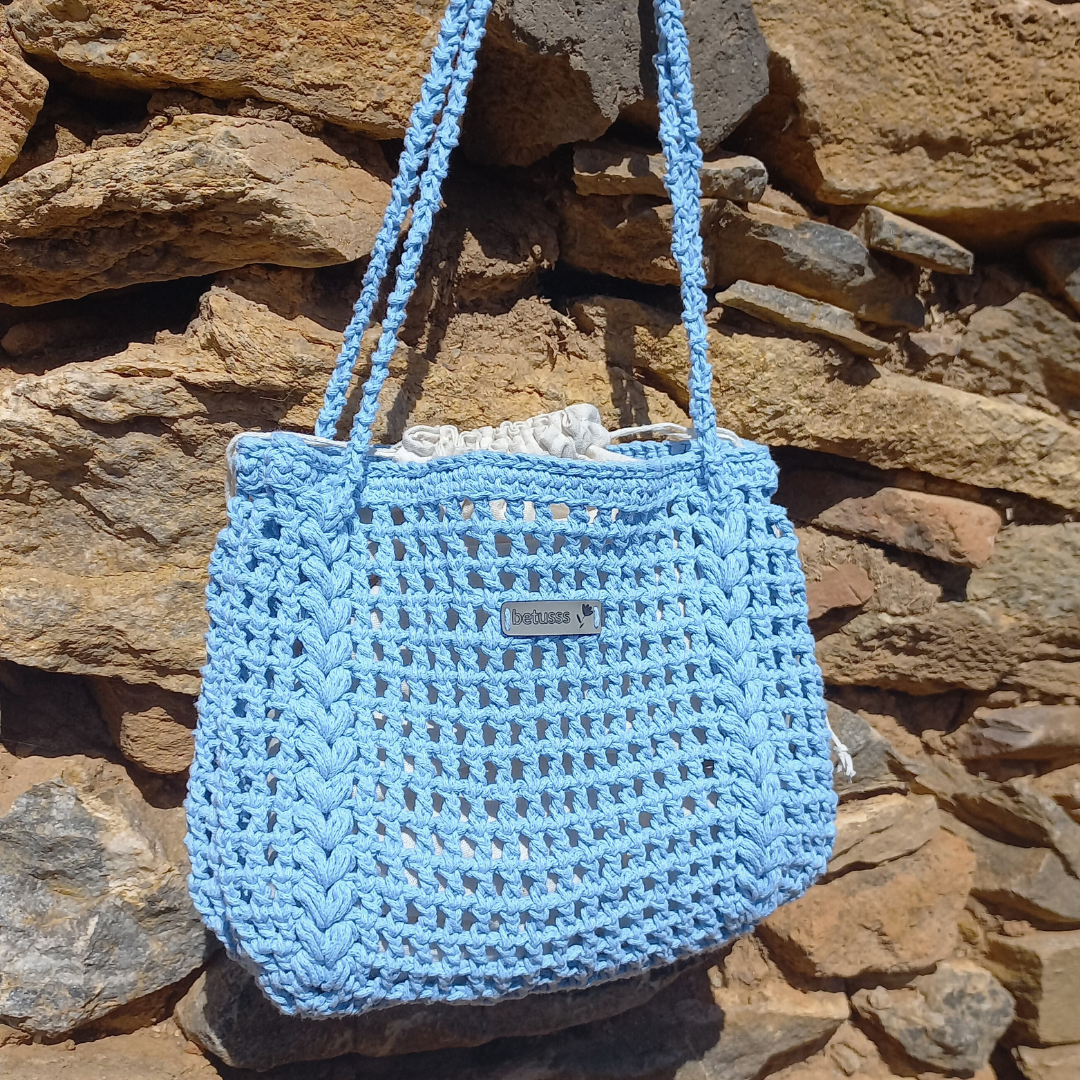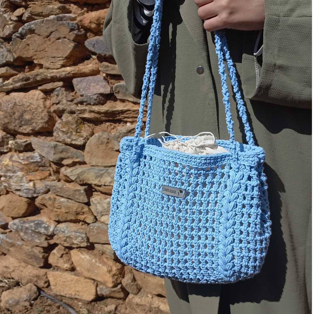 Bu çanta, %100 pamuk makrome ipten ürektir.