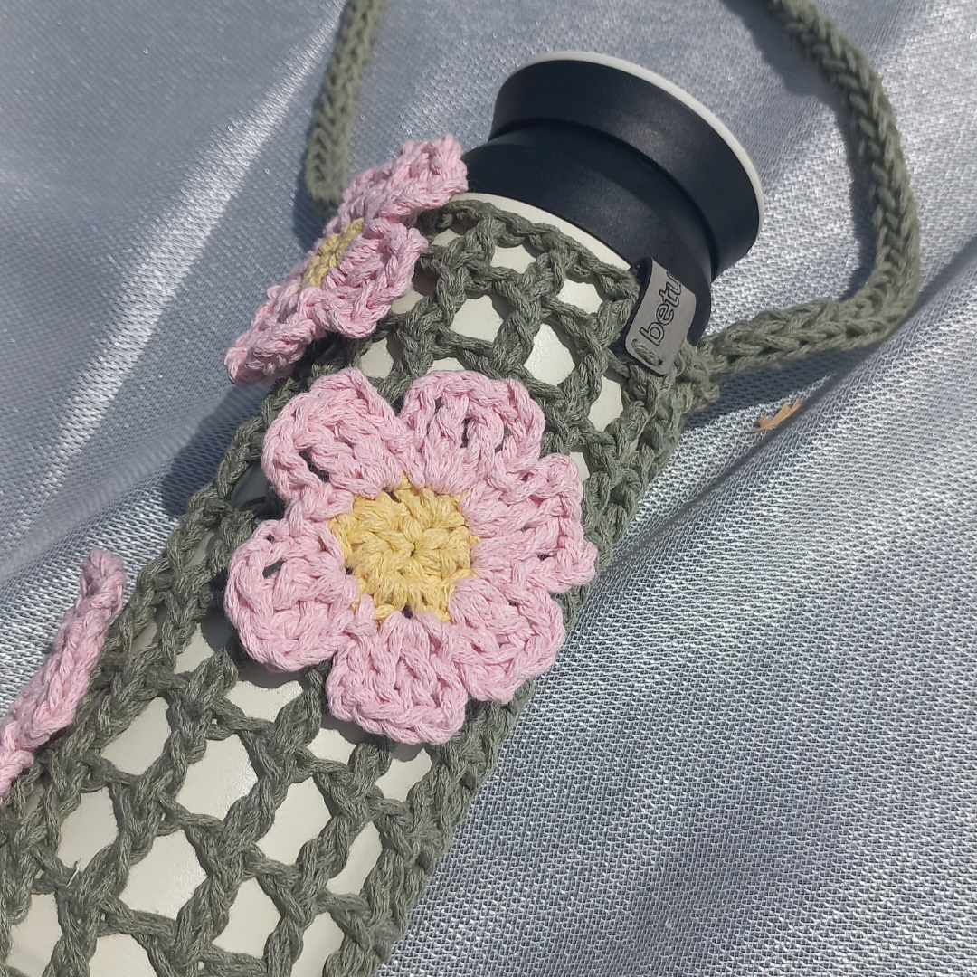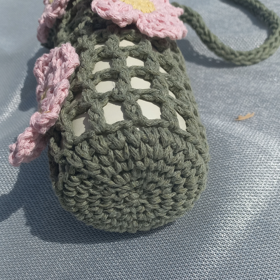 El Örgüsü Haki Çiçekli Matara Kılıfı – Ürün Açıklaması