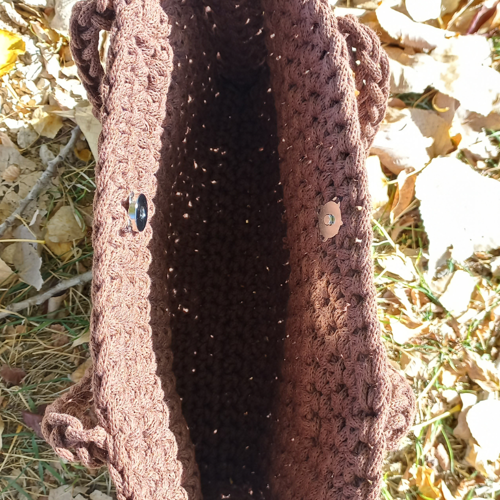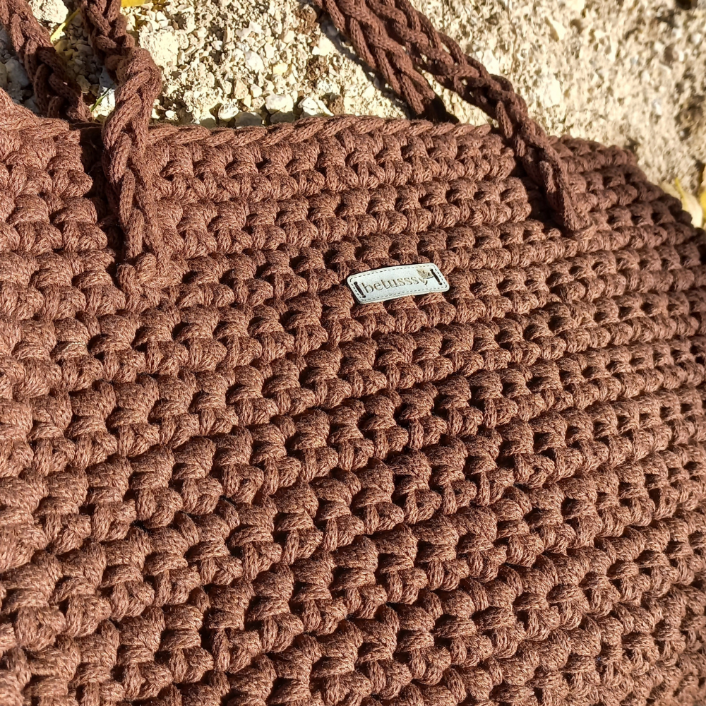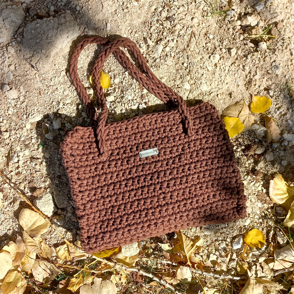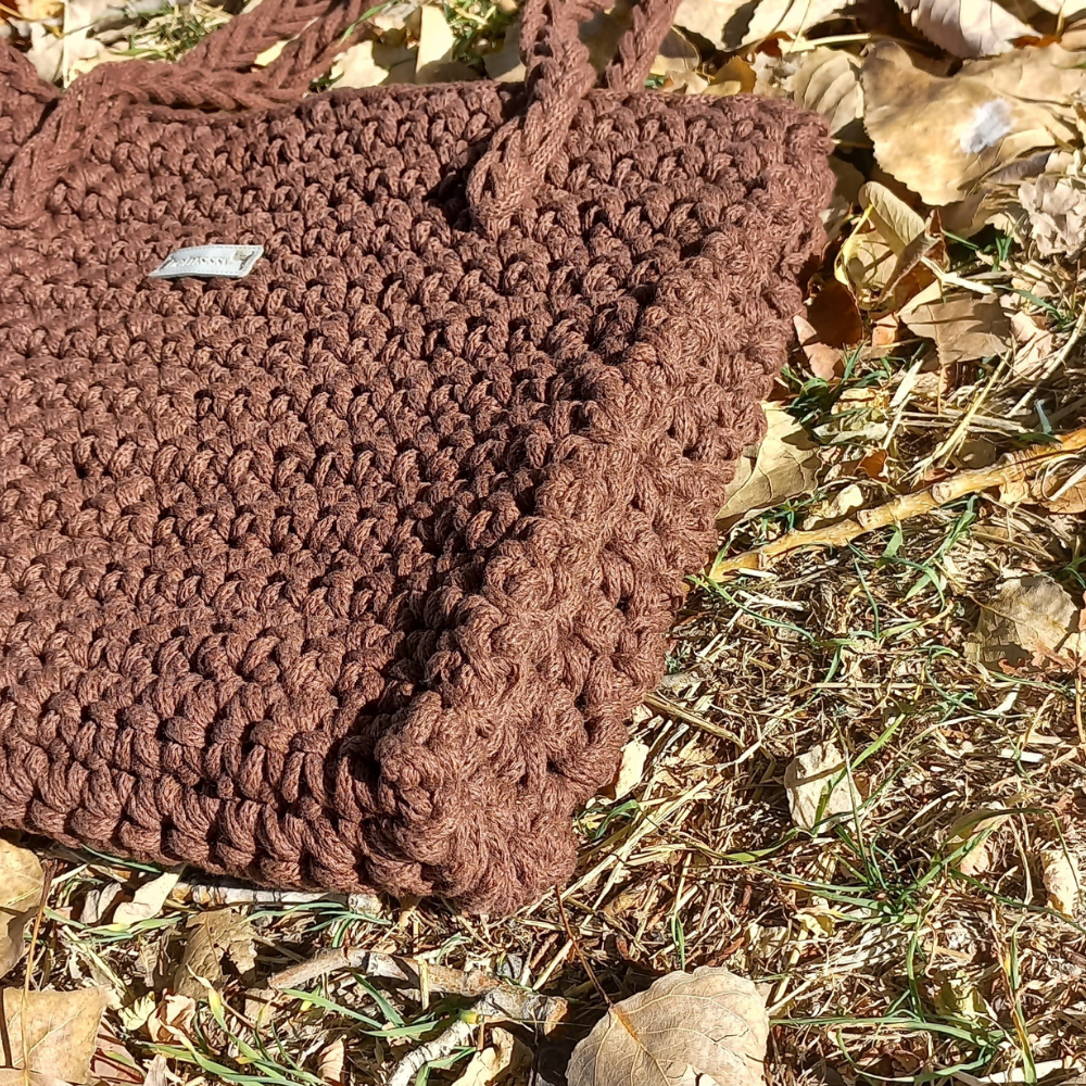 Kahverengi Büyük Örgü Omuz Çantası – El Örgüsü, Kalın Dokulu