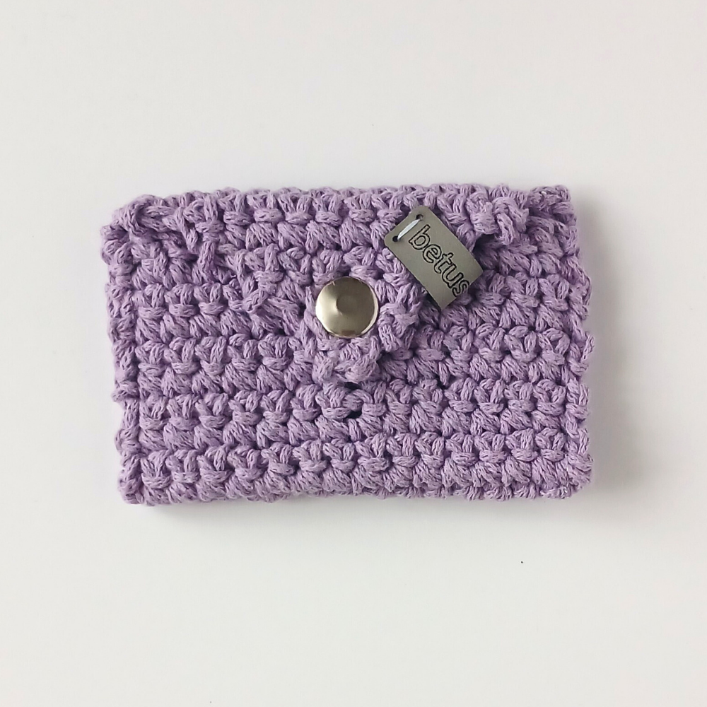 Bu kartlığı yumuşak lila tonuyla, pamuk makrome ip kullanarak elde örüyoruz. Düğmeli tasarımı sayesinde kartlarını güvenle saklarsın. Hafif ve esnek yapısıyla çantanda ya da cebinde rahatça taşırsın. Yumuşak dokusu ciltle uyumludur; el emeğiyle örüldüğü için her biri benzersizdir. Kart, bozuk para ya da küçük notlar için sade ama kullanışlı bir çözümdür. Şıklığı ve sadeliği bir arada sunar. en : 11 cm boy : 7 cm