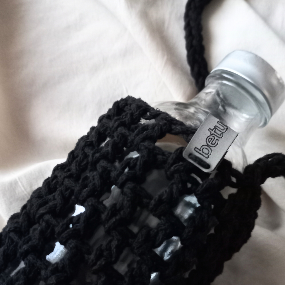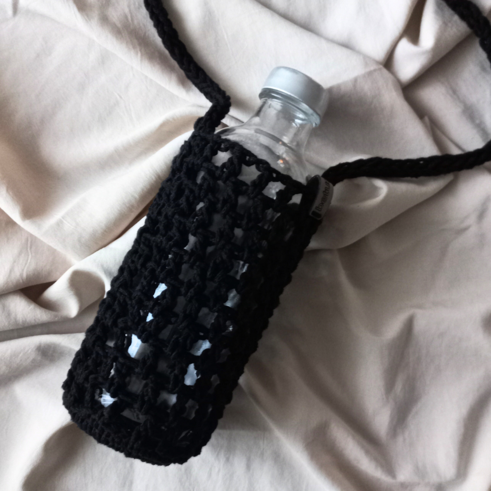 Siyah El Örgüsü Matara Kılıfı | El Yapımı & 0.5L Uyumlu