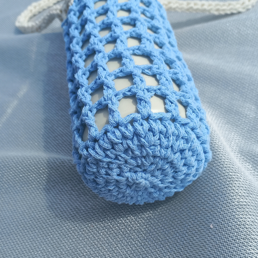 Mavi-Beyaz Matara Kılıfı ,doğal dokusu ve el işi detaylarıyla,