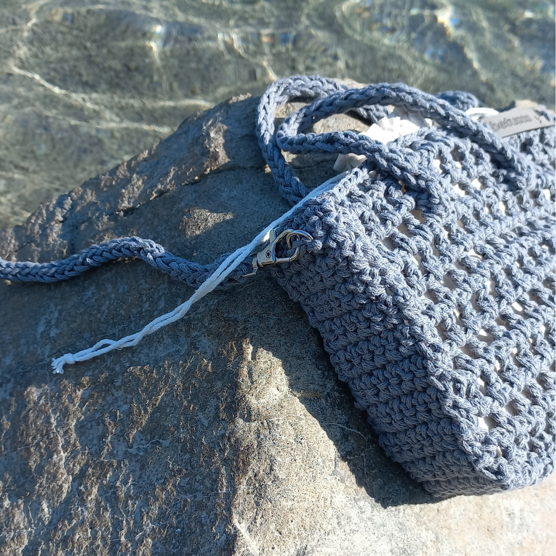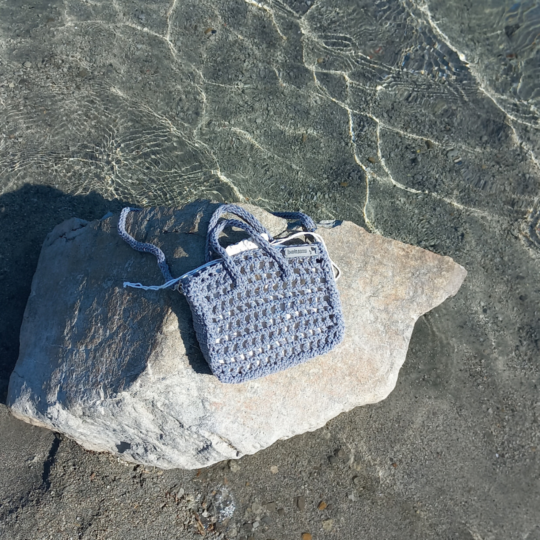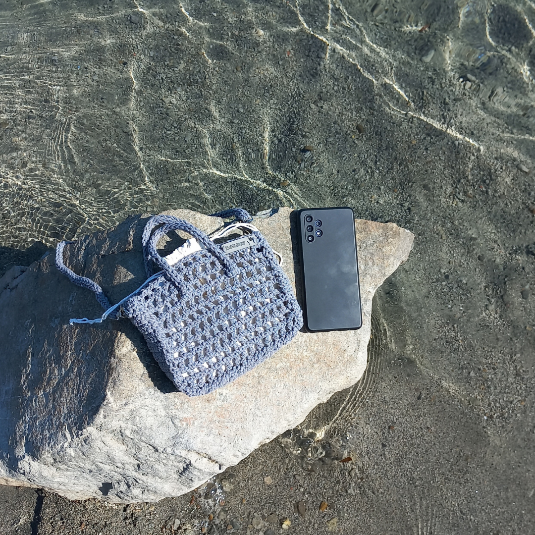 Bu gri mini file çanta, her stile uyum gösterir. Pamuk makrome ip ile tamamen elde örülür. Yumuşak dokusu cilde zarar vermez hatta doğal ip yapısı sayesinde sağlıklı bir kullanım sağlar. Hafifliği ve kompakt yapısı taşıma kolaylığı sunduğu için günlük hayatta rahatlıkla yer bulur.