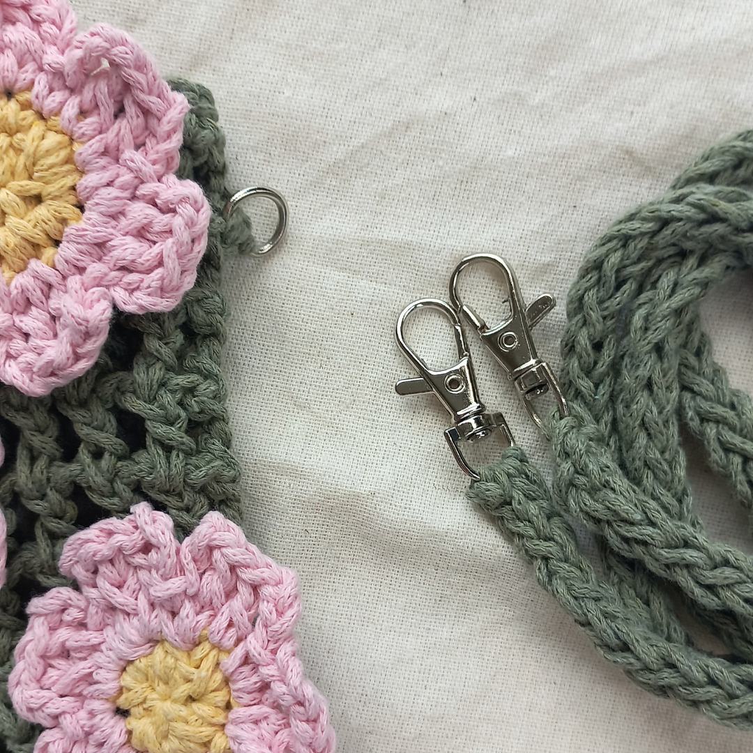 Çiçek detayları, el emeğiyle örülen sade gövdeye canlılık katar ve bu sayede ürün hem fonksiyonel hem estetik bir kimlik kazanır.