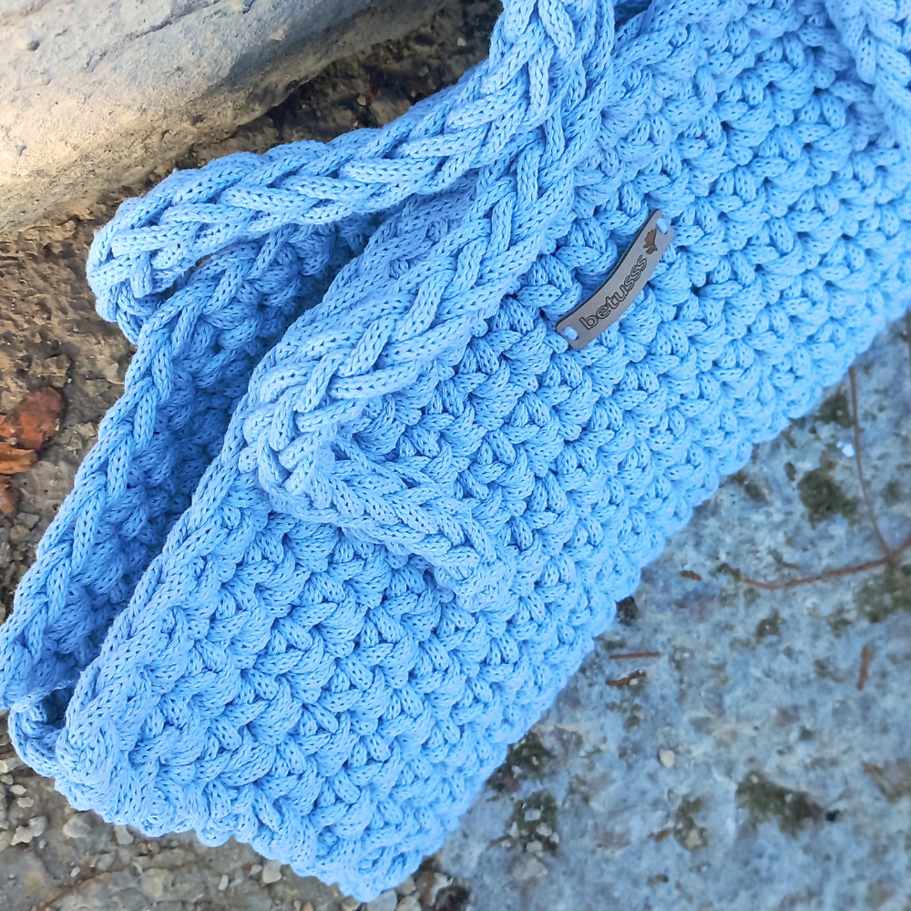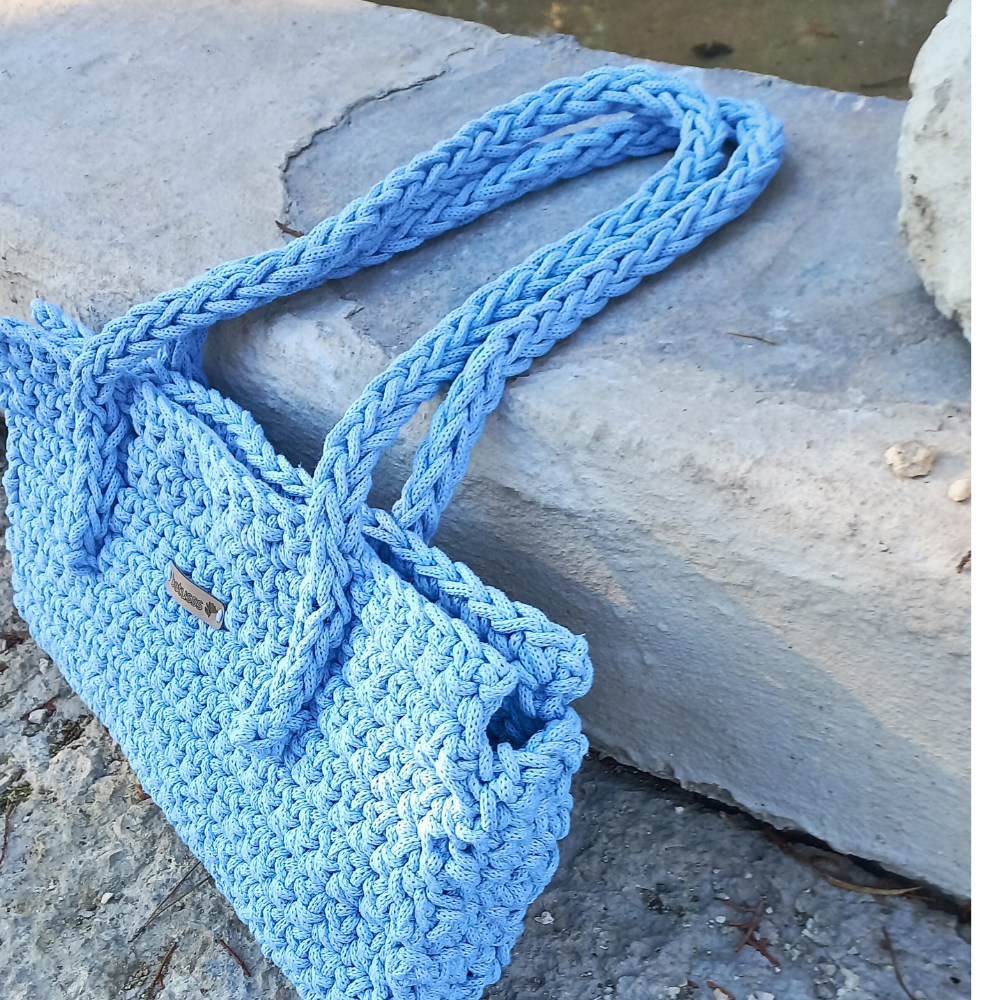 💙 Pastel Mavi Baget Çanta – Kalın İple Örülmüş, Tok Duruşlu ve Zarif
