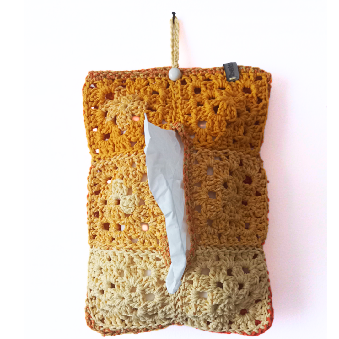 Turuncu ebruli örgü peçetelik, evinizin ya da ofisinizin dekorasyonuna canlı ve sıcak bir dokunuş sunar. Canlı turuncu rengi sayesinde bulunduğu ortamı hemen canlandırır ve pozitif bir hava yaratır. Ebruli ip kullanımı, peçeteliğin yüzeyinde geçişli tonlar oluşturarak zengin bir görünüm sağlar. Bu özel tasarım, her iki yüzü de aynı özenle örüldüğü için çift taraflı kullanım imkânı sunar. Böylece farklı açılardan baktığınızda da şıklığını korur.