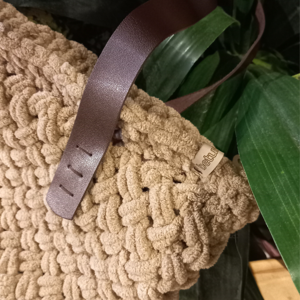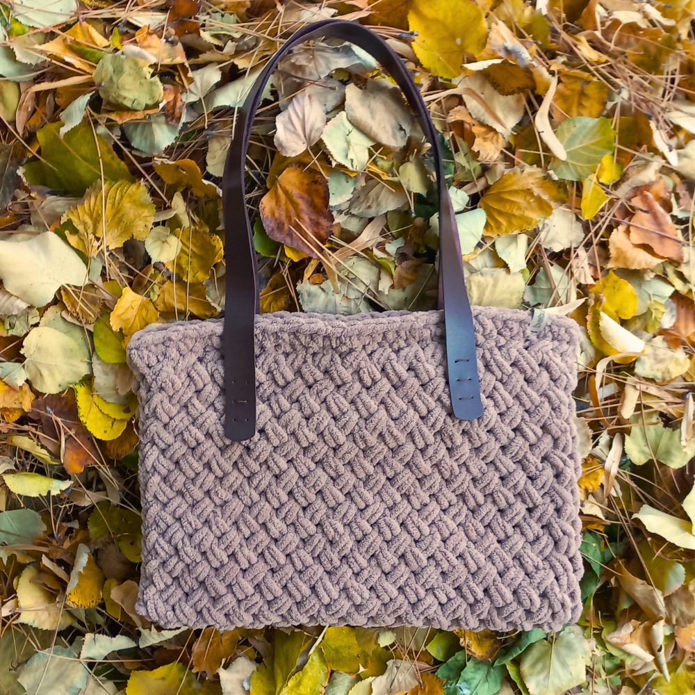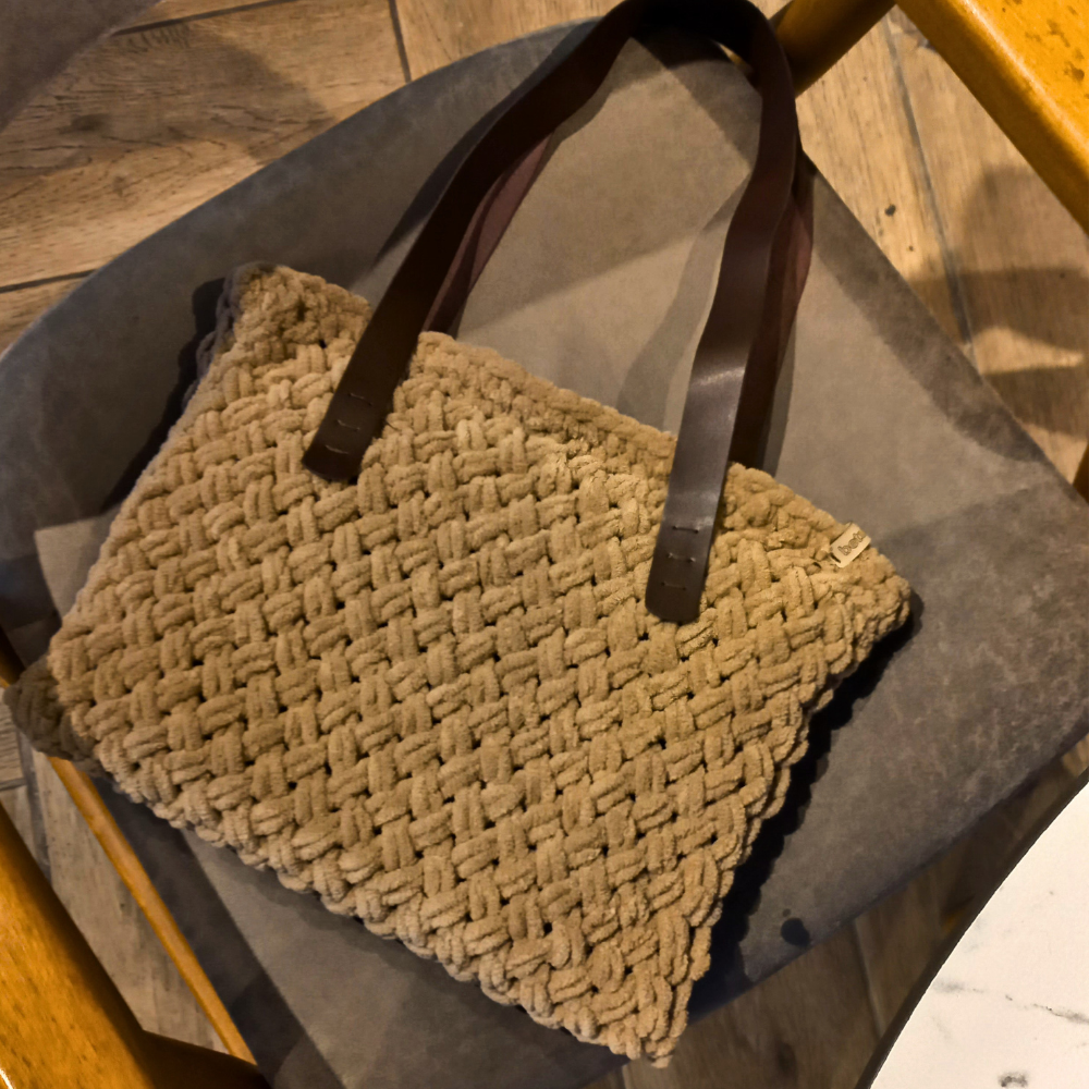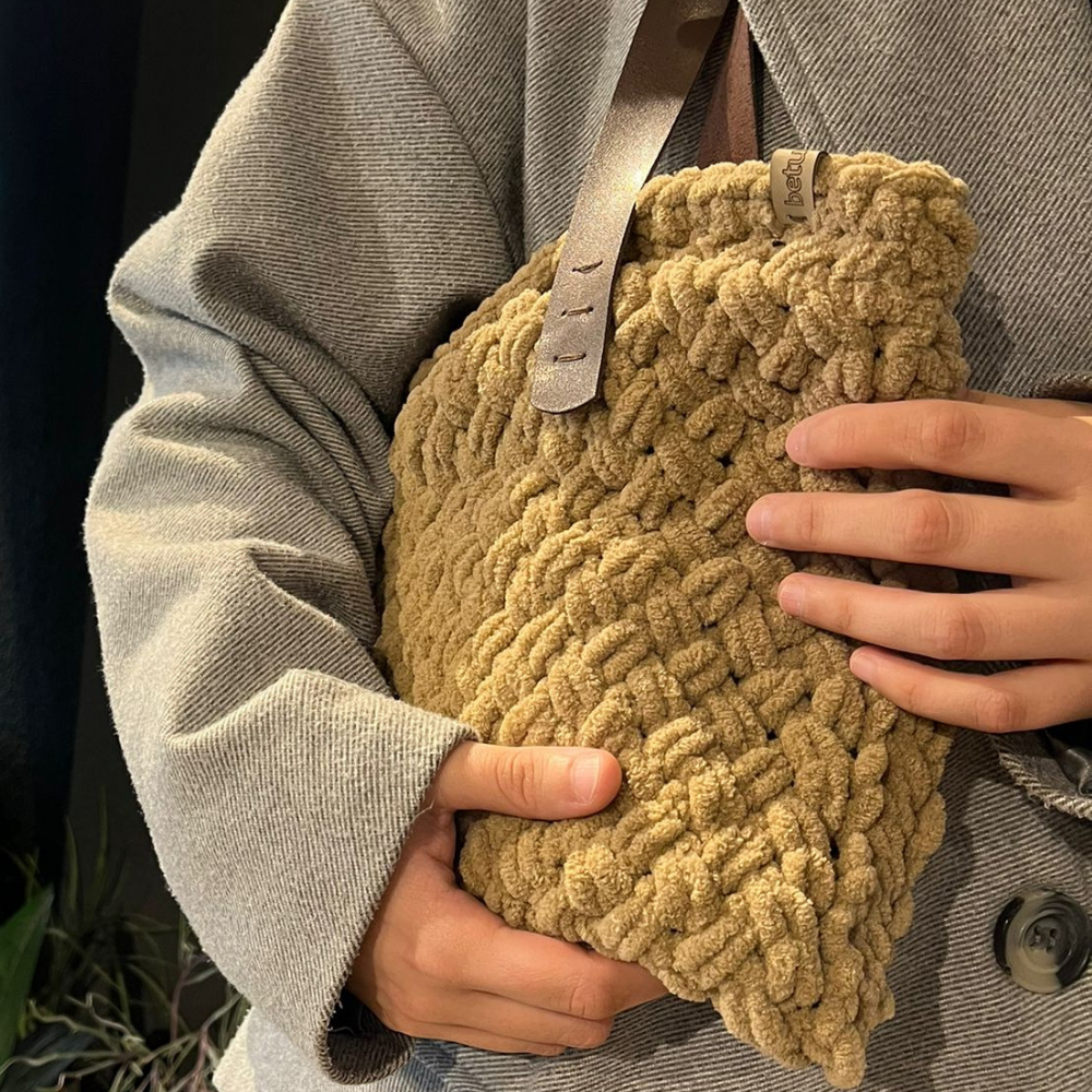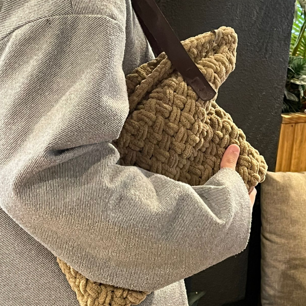 Vizon Kadife Örgü Omuz Çantası –El Örgüsü, Şık & Minimal Tasarım